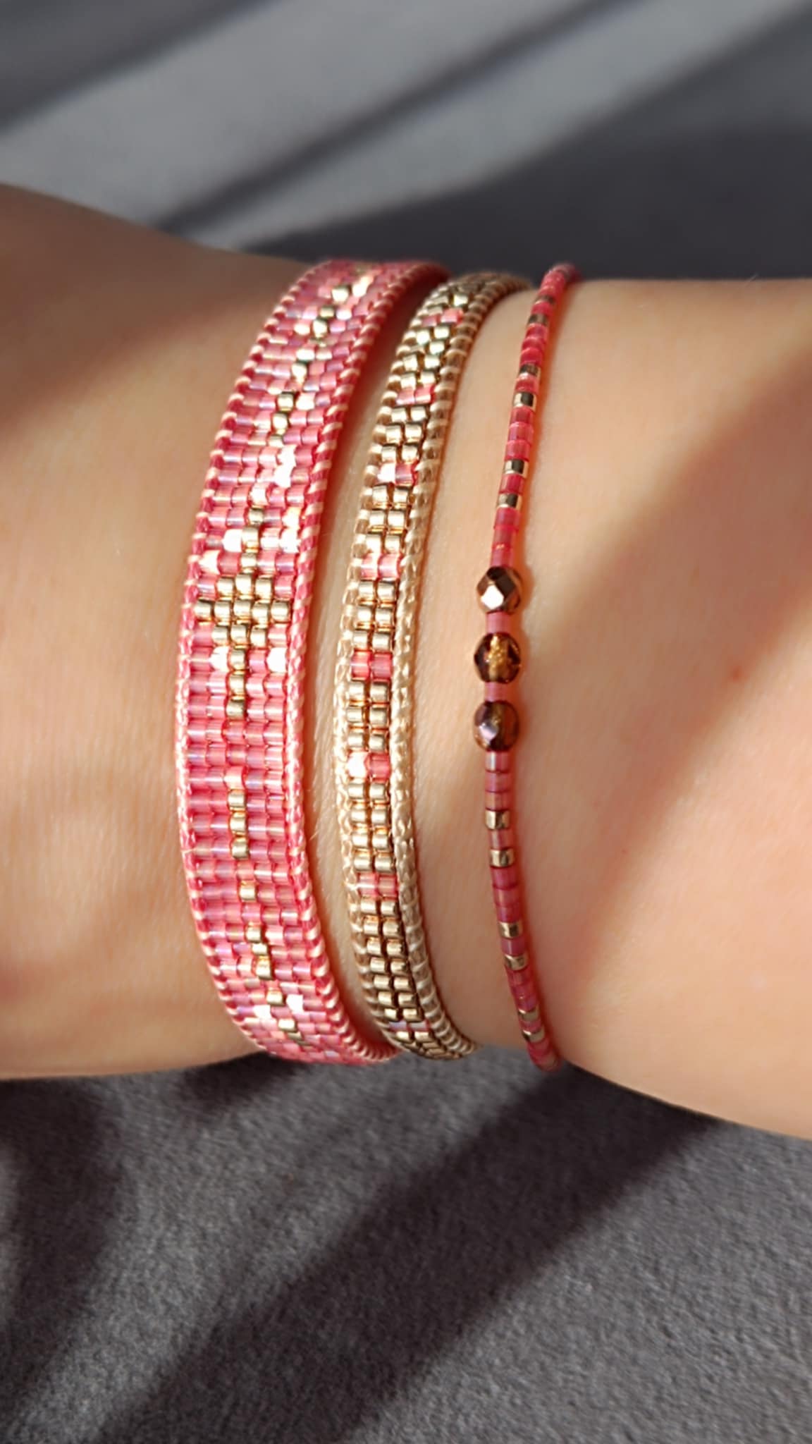 Oferuję zarówno delikatne bransoletki z drobnych koralików Miyuki, idealne na co dzień, jak i efektowne szerokie modele, które doskonale sprawdzą się jako biżuteria na specjalne okazje. Dzięki różnorodności wzorów, moje bransoletki świetnie komponują się z innymi elementami biżuterii – możesz je łączyć w zestawy lub nosić solo jako główny akcent stylizacji.